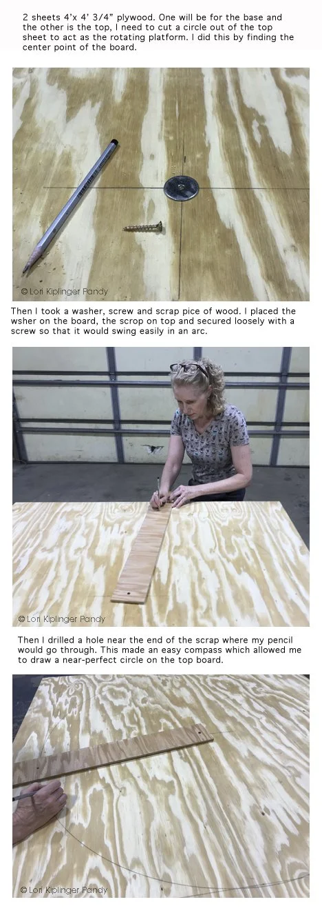 Knowing that I’ll need good lighting and photography I have chosen to invest time and money on a rotating platform. I spent a lot of time on the internet looking for plans and options and in the end, used information from several sites to come up with my own plan to build it. My husband graciously helped with the hard work and heavy lifting and taught me some new constructions skills in the process, although I did leave the angle-grinder work to his skilled hands.